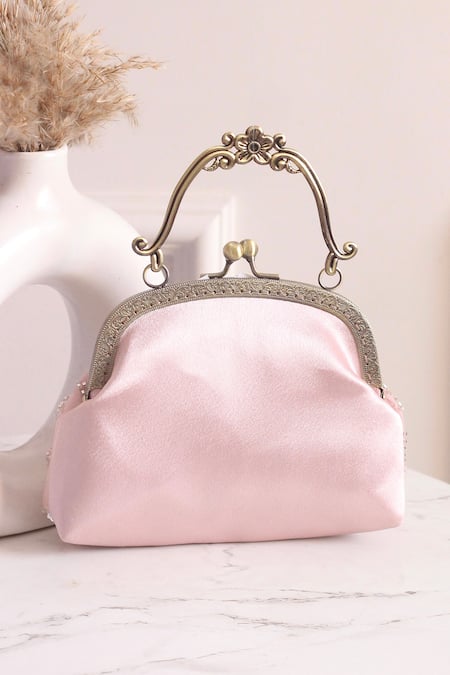 Buy_Boxwish By Bhumika_Peach Embroidery, Beads Embellished Floral Vintage Frame Clutch _at_Aza_Fashions