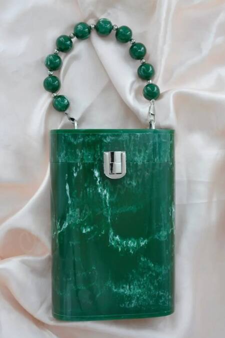 Green Pearls Breeze Cylindrical Marble Textured Resin Clutch