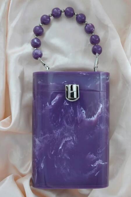 Buy_Handle Those Bags_Purple Pearls Breeze Marble Cluth With Strap_at_Aza_Fashions