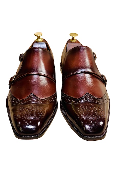 Buy_Artimen_Brown Brogue Double Strap Monk Shoes _Online_at_Aza_Fashions