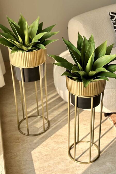 Gold Iron Brooklyn Fluted Planter - Set Of 2