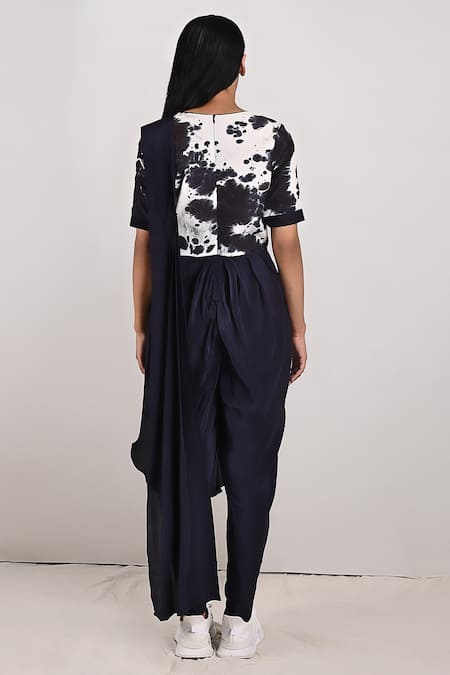 Black Crepe Tie And Dye Round Bryce & Print Jumpsuit Saree