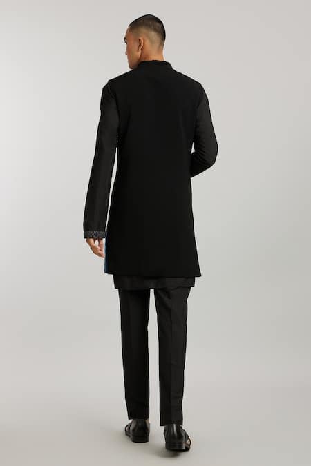 Black Crepe, Wool, Cotton Luciano Sleeveless Sherwani