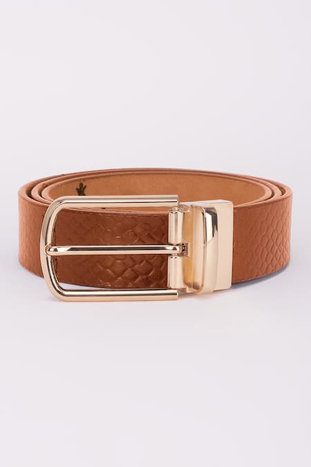 Tan brown belt crafted in premium Italian leather featuring textured detailing