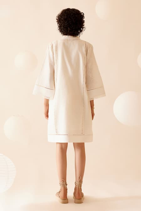 Ivory Chanderi Lace Band Collar Isa Detailed Short Dress