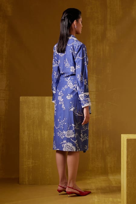 Blue Cotton, Silk Collared Tasha Floral Print Wrap Dress