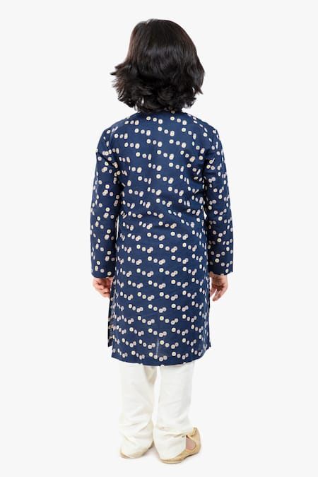 Navy blue kurta featuring a band collar with pom-pom and bead embellishments. Paired with a matching pyjama.