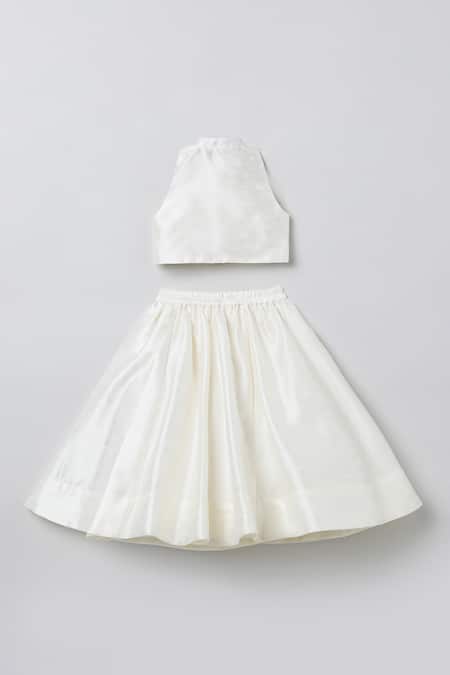 White Silk Beads Embroidered Top And Tasseled Skirt Set