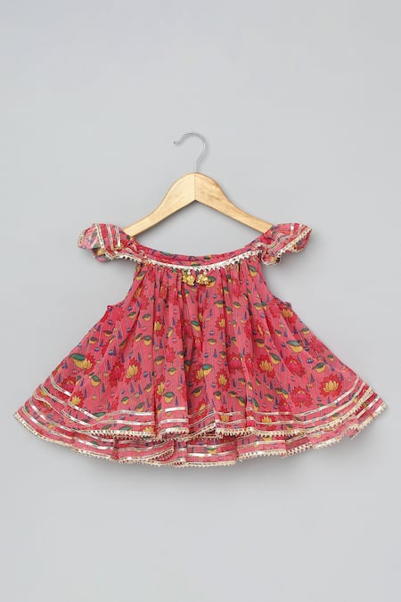 Buy_Byb Premium_Pink Cotton, Georgette Embroidery, Gota Floral Flared Kurta With Dhoti Pant