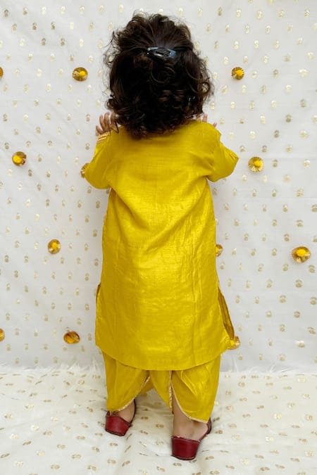 Yellow Silk Gota Patti Embellished Kurta And Dhoti Pant Set