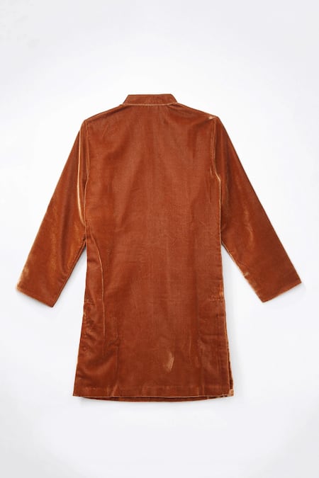 Brown Velvet, Cotton Satin Embroidery Mandarin Collar Kurta Set