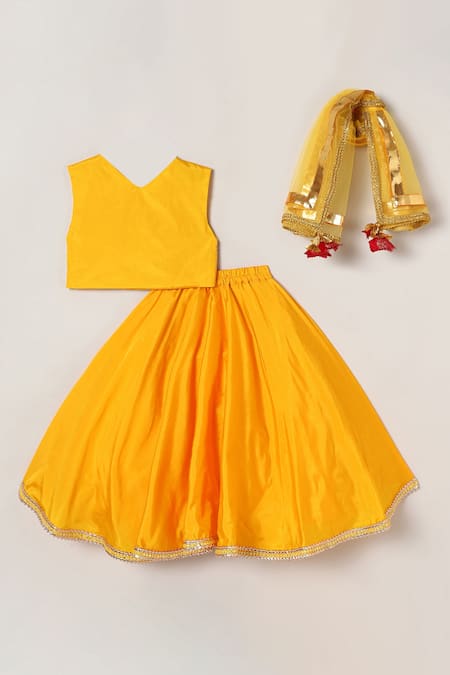 Buy_Byb Premium_Yellow Cotton, Silk, Acrylic Mirrors, Embroidery Blouse Skirt Set _Online_at_Aza_Fashions