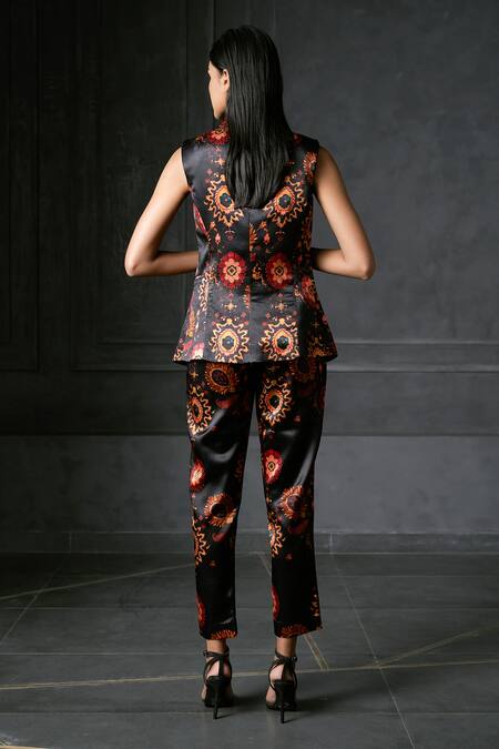 Black Mashru Print Floral Calico Cigarette Pants