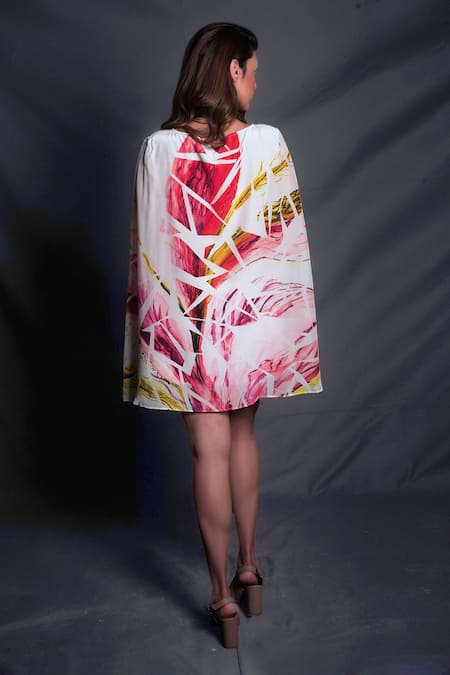 White Crepe Round Neck Cape Dress