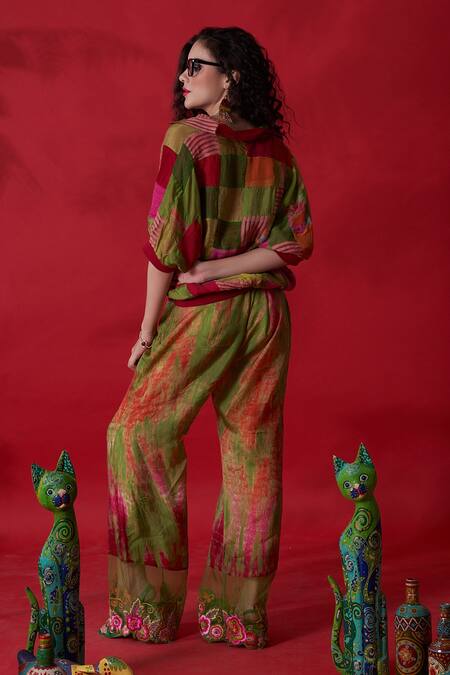 Green Jute Spread Collar Flora Patchwork Crop Top