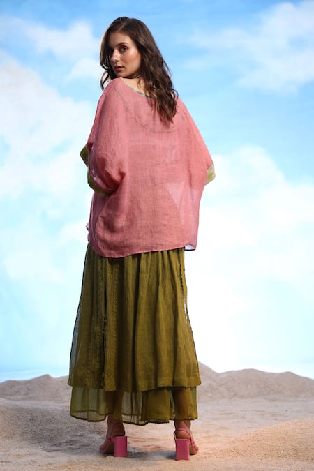 Buy_CAPISVIRLEO_Pink Linen Embroidery Round Neck Liaden Thread Crop Top _Online_at_Aza_Fashions
