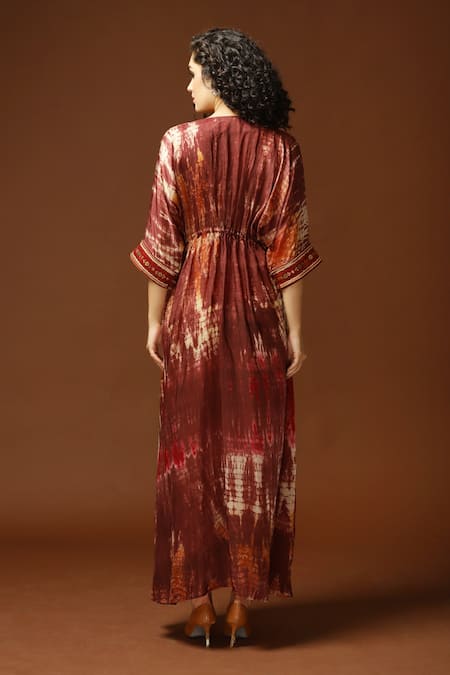 Buy_Capisvirleo_Brown Habutai Silk Sequin, Thread And Bead, Tie & Dye V Neck & Kaftan _Online_at_Aza_Fashions