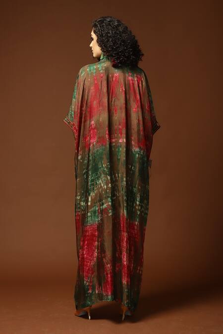 Buy_Capisvirleo_Red Habutai Silk Sequin, Thread And Bead, Tie & Dye Collared Neck & Kaftan _at_Aza_Fashions