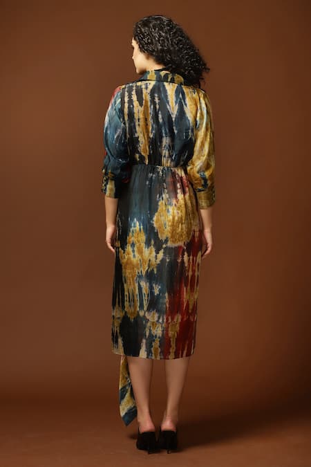 Buy_Capisvirleo_Black Habutai Silk Tie And Dye Collared Neck & Midi Dress _Online_at_Aza_Fashions