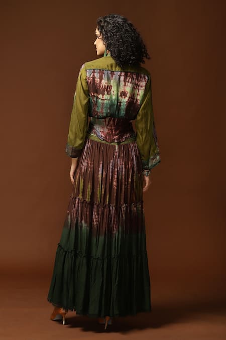 Green Habutai Silk Tie And Dye Collared Neck & Shirt