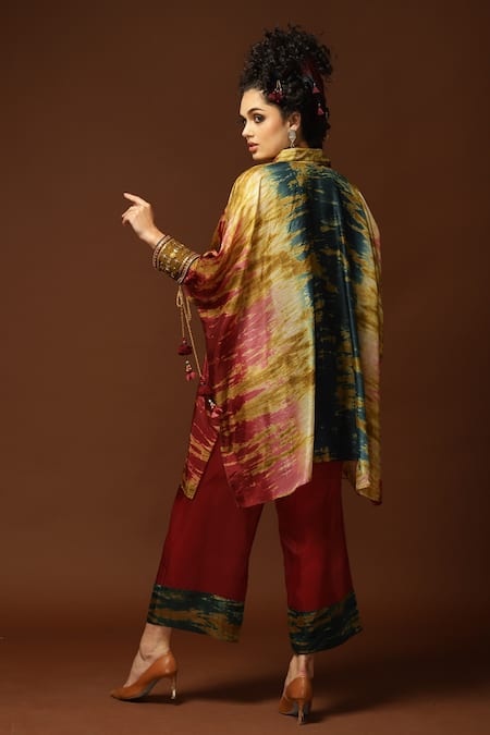 Buy_Capisvirleo_Pink Habutai Silk Sequin, Thread And Bead, Tie & Dye Kaftan Tunic & Pant Set _Online_at_Aza_Fashions