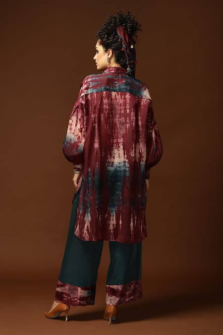 Shop_Capisvirleo_Maroon Habutai Silk Tie And Dye Collared Neck Tunic & Pant Set _Online_at_Aza_Fashions