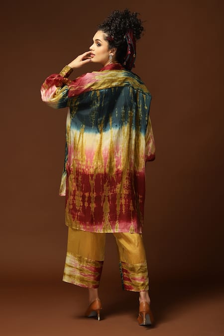 Buy_Capisvirleo_Pink Habutai Silk Tie And Dye Collared Neck Tunic & Pant Set _Online_at_Aza_Fashions