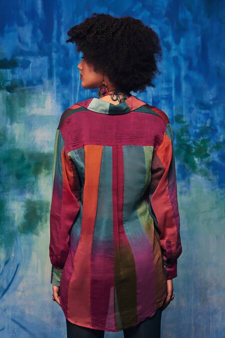 Multi Color Chanderi Patchwork Collared Zoya Gradient Panelled Shirt