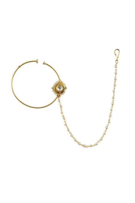 Buy_Riana Jewellery_Gold Plated Pearls, Crystals Carved Bead Embellished Nath _at_Aza_Fashions