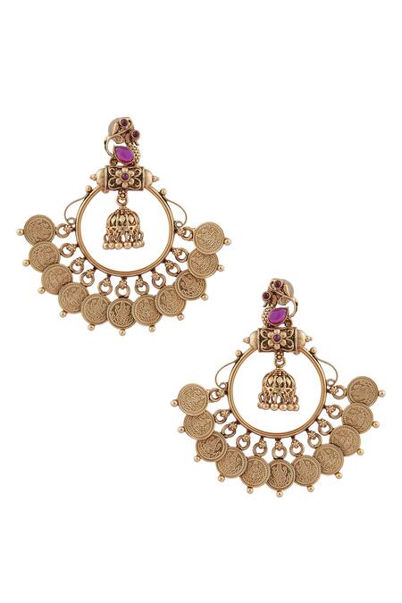 Buy_Minaki_Gold Plated Stones Carved Chandbalis_Online_at_Aza_Fashions