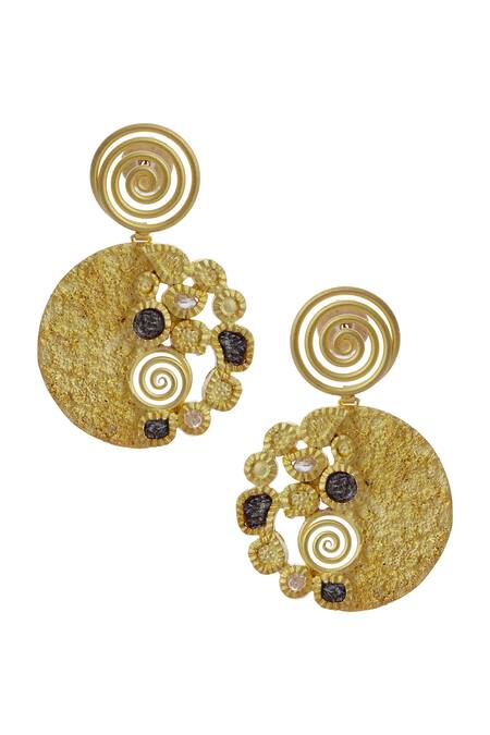 Buy_Mira By Radhika Jain_Gold Plated Carved Danglers_at_Aza_Fashions