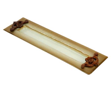 White & gold rectangular-shaped painted platter with floral accent detail.