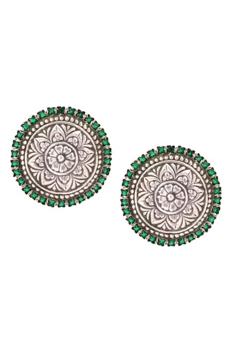 Buy_Sangeeta Boochra_Silver Plated Stones, Metallic Thread Carved Stud Earrings _Online_at_Aza_Fashions