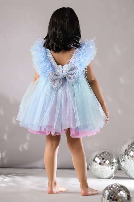 Buy_Casa Ninos_Purple Net Feathers, Sequins Embellished Dress _Online_at_Aza_Fashions