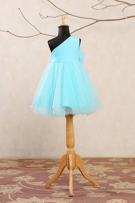 Buy_Casa Ninos_Blue Net, Satin One Shoulder Ruffled Yoke Dress _Online_at_Aza_Fashions