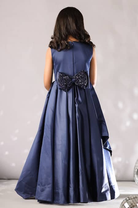 Detachable bow detailing at the back, Sequin embroidered bodice, Flowing skirt design