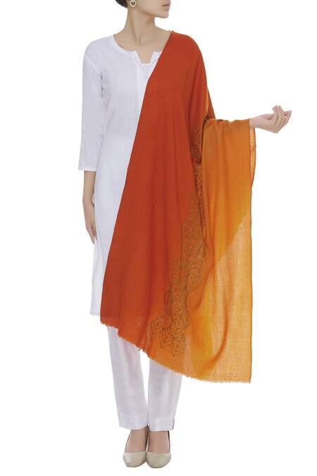 Keep it simple yet elegant for a traditional occasion; team up this vibrant rust orange dupattta with your traditional outfit. The shawl features placement pittan embroidery.