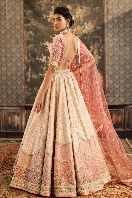 Pink Tulle, Velvet, Silk Lace, Mirrors, Beads, Sequins Embroidered Lehenga Set