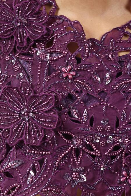 Buy_Chaashni By Maansi And Ketan_Purple Satin, Organza Pearls, Stones, Embellished Cape With Draped Skirt Set