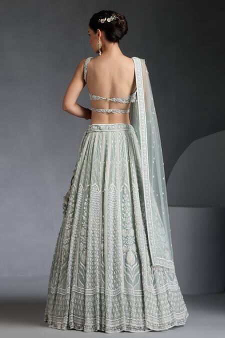 Green Net Pearls, Sequins, Beads Floral Jaali Embellished Bridal Lehenga Set