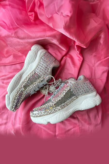 Crystal and sequins embellishments, Synthetic leather material, Tassel detailing on laces
