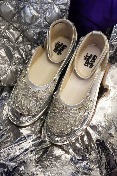 Delicate silver leaf embroidery, Sparkling sequins embellishments, Memory foam cushioned insoles