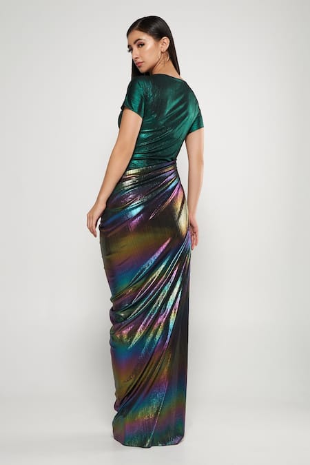 Multi Color Draped Metallic Gown