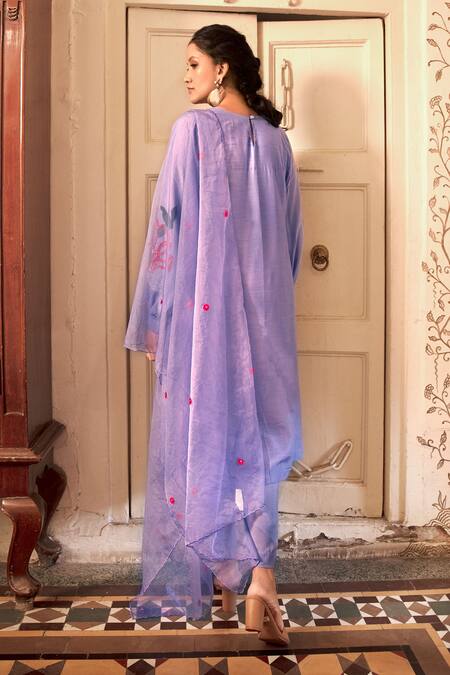 Lilac kurta with floral applique, glass bead embroidery. Paired with pant & dupatta.