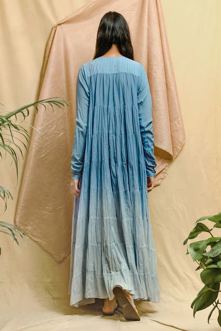 Buy_Chambray & CO._Blue Cotton Embroidery Round Neck Ombre Tiered Dress _Online_at_Aza_Fashions