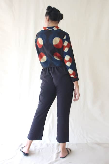 Side pockets on pantClosure: >Top: Front button placket >Pant: Elasticated waist band >Disclaimer: Using the Shibori technique is inherently unpredictable, which is what makes it so appealing. It is a meticulous process, and yet, there is an element of surprise as there is no way to predict the outcome once the cloth has been dipped into the dyed. These Shibori Dyed Sets feature a variety of patterns, and hues that blend in harmony, ensuring that no two pieces will be exactly alike.