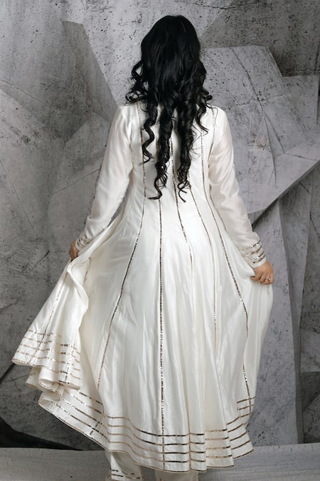 Buy_Archana Kochhar_Ivory Chanderi Gota Keyhole Anarkali And Pant Set _at_Aza_Fashions