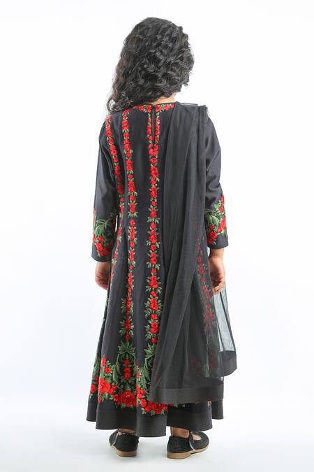 Black Chanderi Embroidered Floral Anarkali With Dupatta