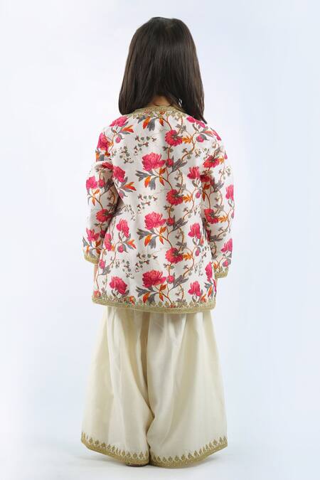 Ivory Chanderi Embroidered Floral Angrakha And Sharara Set