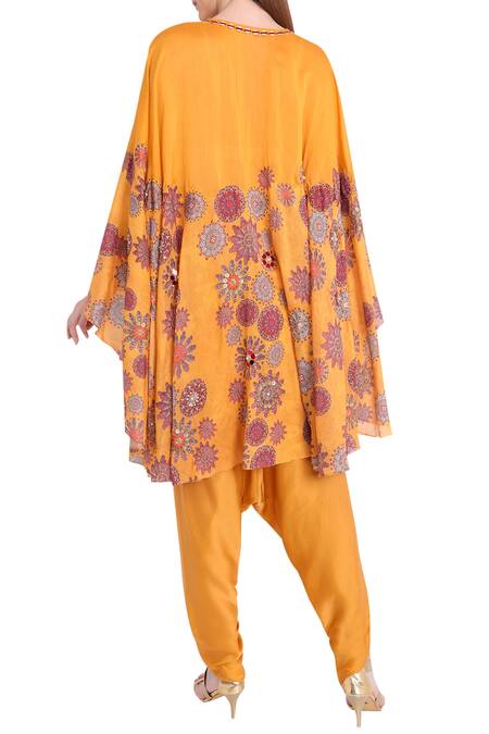 Yellow Chanderi Round Neck Cape With Dhoti Pants